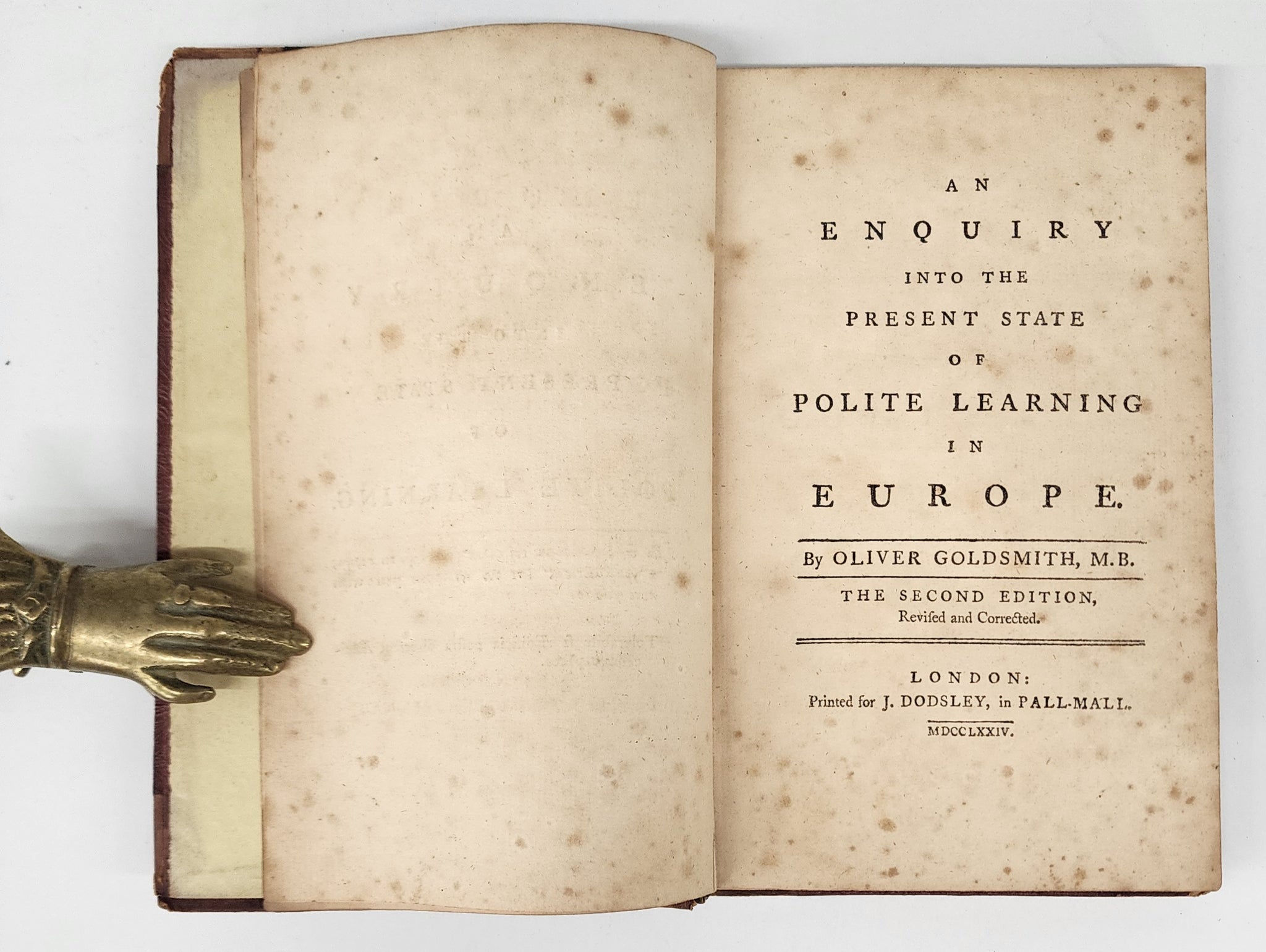 Originally published in 1759, this second edition, published a few months after Goldsmith's death, shows more extensive alterations than any other revision by Goldsmith. There are stylistic changes, rearrangements of material, omitted sentences and paragraphs (with the apparent intention of shortening the book) and the addition of a few transitional sentences (Friedman I 249).