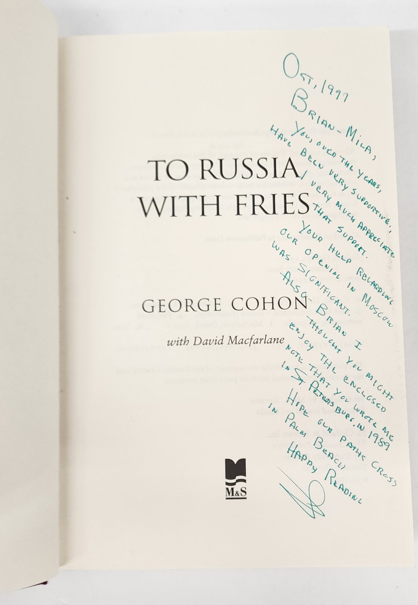 The autobiography of George Cohon, the Canadian-born American executive who founded McDonald's of Canada and McDonald's of Russia. Foreword by Mikhail Gorbachev. Inscribed to Brian and Mila because "your help regarding or opening in Moscow was significant." A classic work on burger diplomacy.