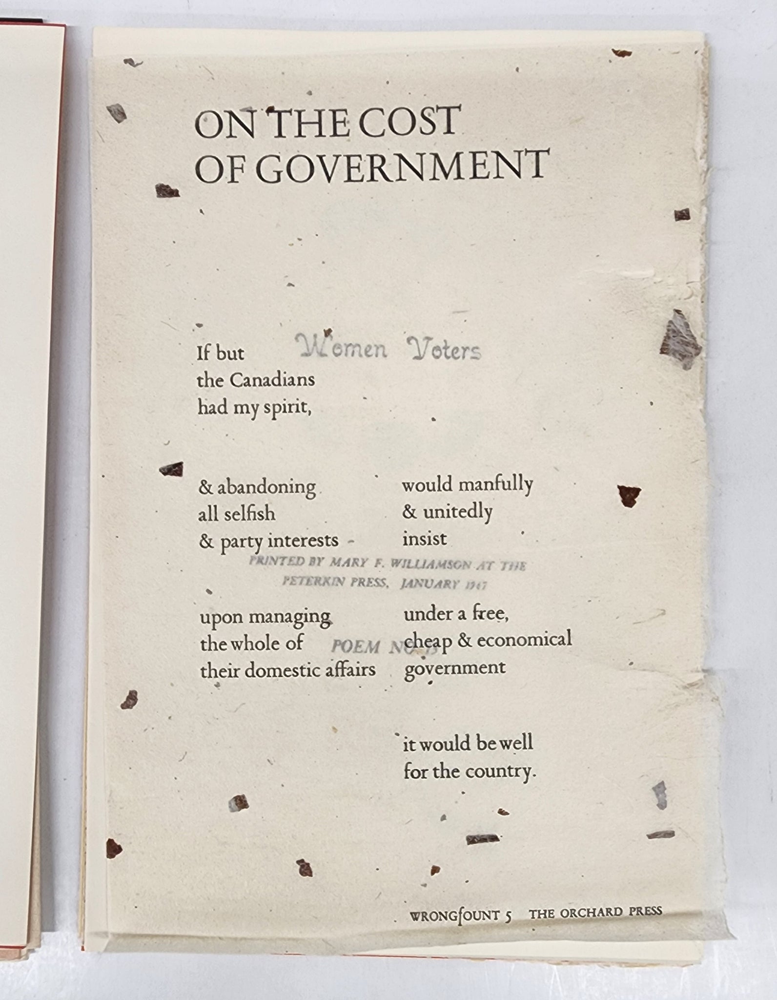 Typographically rearranged [into verse form] from the letters, articles and speeches of William Lyon Mackenzie. Originally published in Toronto by Swan Pub. Co. in 1966 under title The Mackenzie Poems, which is the title on the front of this folder.