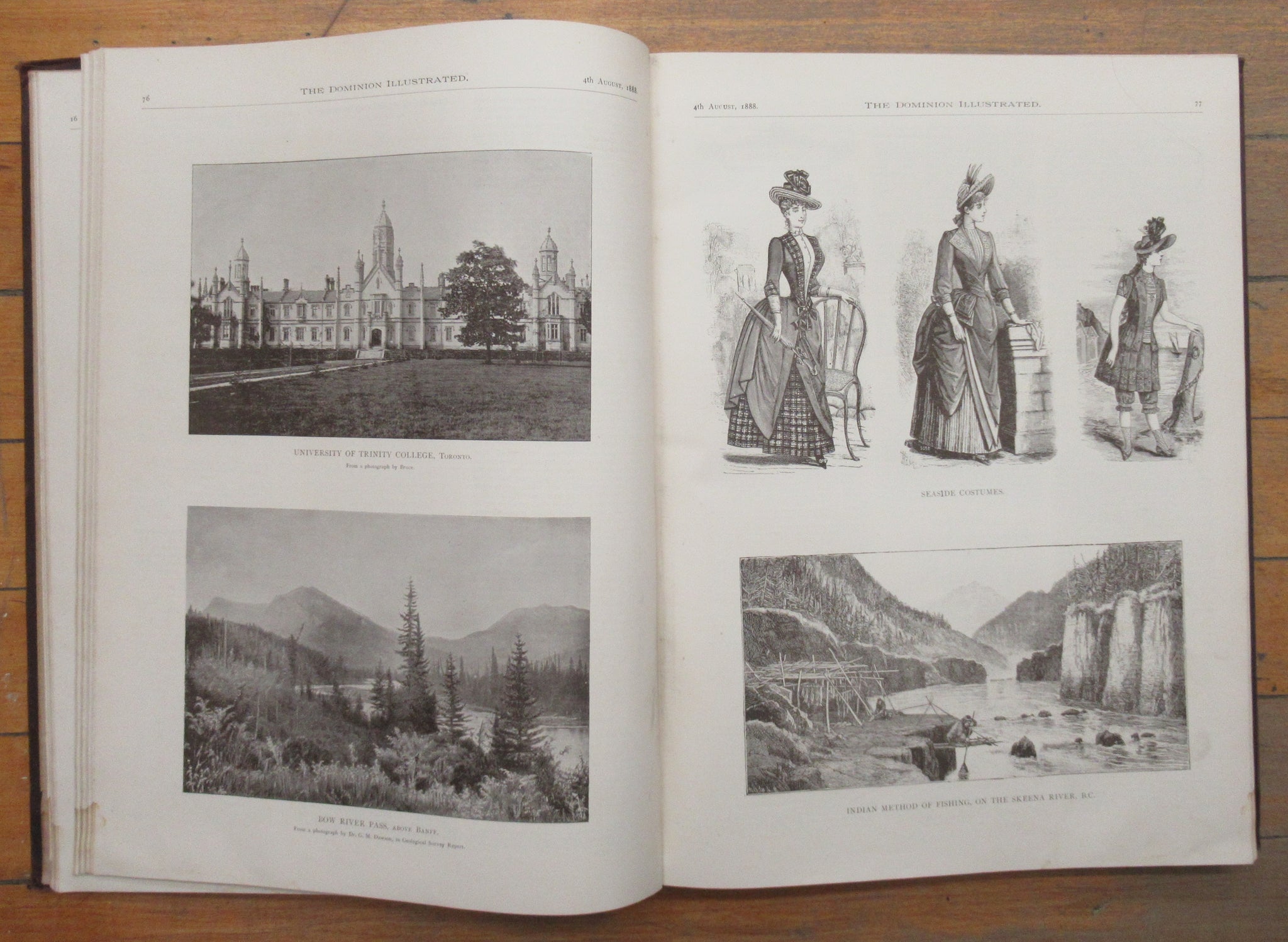 The world in 1888-89. Photos of Rideau Hall, Sir John A. Macdonald, Winnipeg City Hall, Banff Hotel, Niagara whirlpool, Parliament buildings at Ottawa, Canada Southern Railway Bridge in St. Thomas, London, Ontario Lunatic Asylum, much more Canadian scenery. Engravings of the Eiffel Tower (just completed), Paris Exhibition central dome, Industrial Hall, "new remedy for spinal diseases" etc. Also articles and poetry as well as humour.