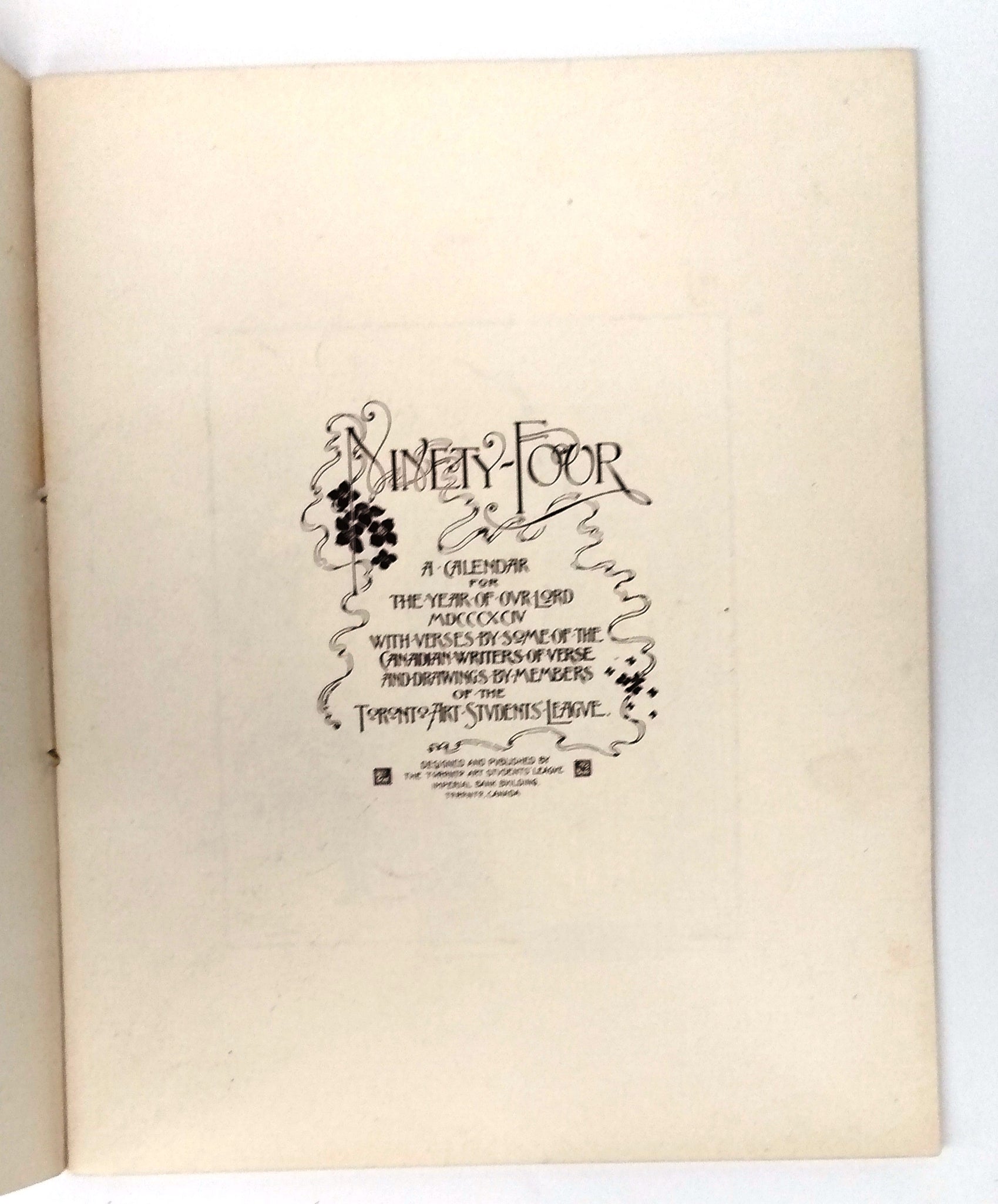 Ninety-Four: A Calendar for the Year of our Lord 1894 with Verses by some of the Canadan Writers of Verse and Drawings by Members of the Toronto Art Students League