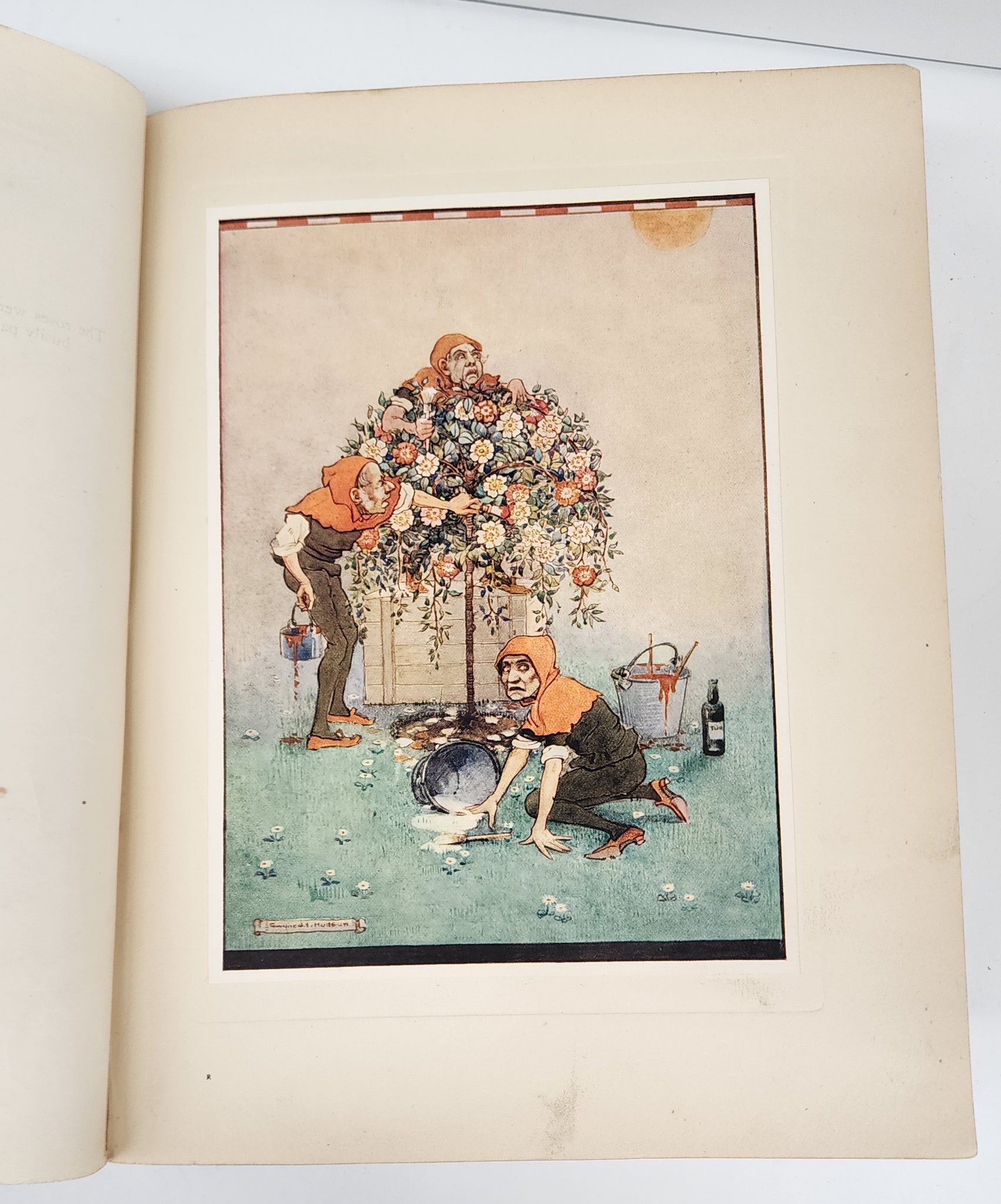 180 p., interspersed with plates. 26 cm. 12 pasted-in colour plates. Smaller partial-colour in-text illustrations. Tiny b&w illustrations on tissue guards. Burgundy cloth with gold and black print. Spine ends repaired. Spine cloth a bit faded. Cloth wrinkling on both covers. Ink inscription on front endpaper. Some thumbing and staining throughout.