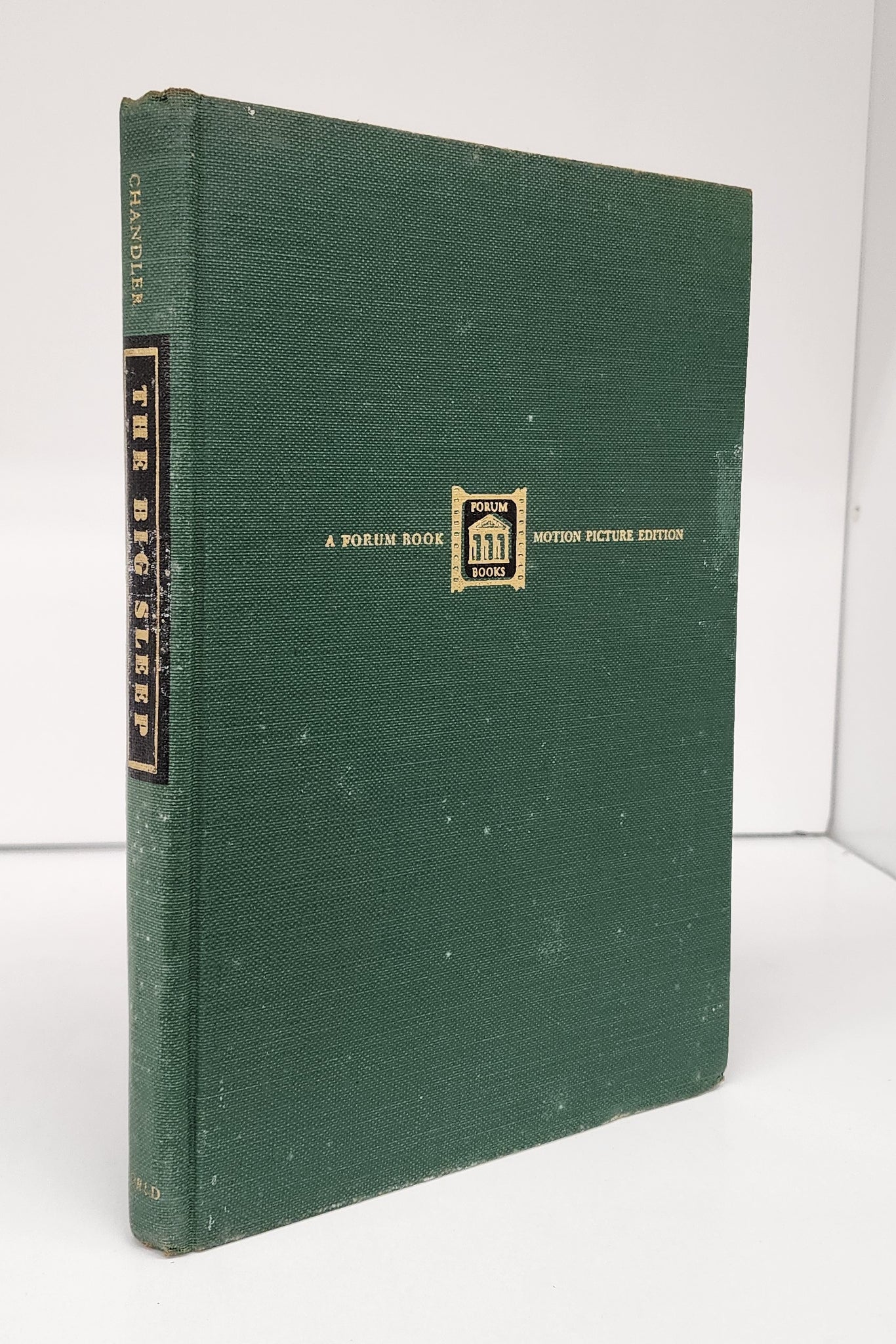 In 1946, Warner Brothers produced a noirish film based on Chandler's novel, The Big Sleep. The film, starring "Bogie and Bacall," was a success, despite its convoluted plot, script that changed during filming, Hays Code censorship, and some reviewers' conviction that Bacall couldn't act. Cast of the film listed on p. 2. List of other books into movies on rear jacket flap. Paper likely browned due to cheap wartime quality.