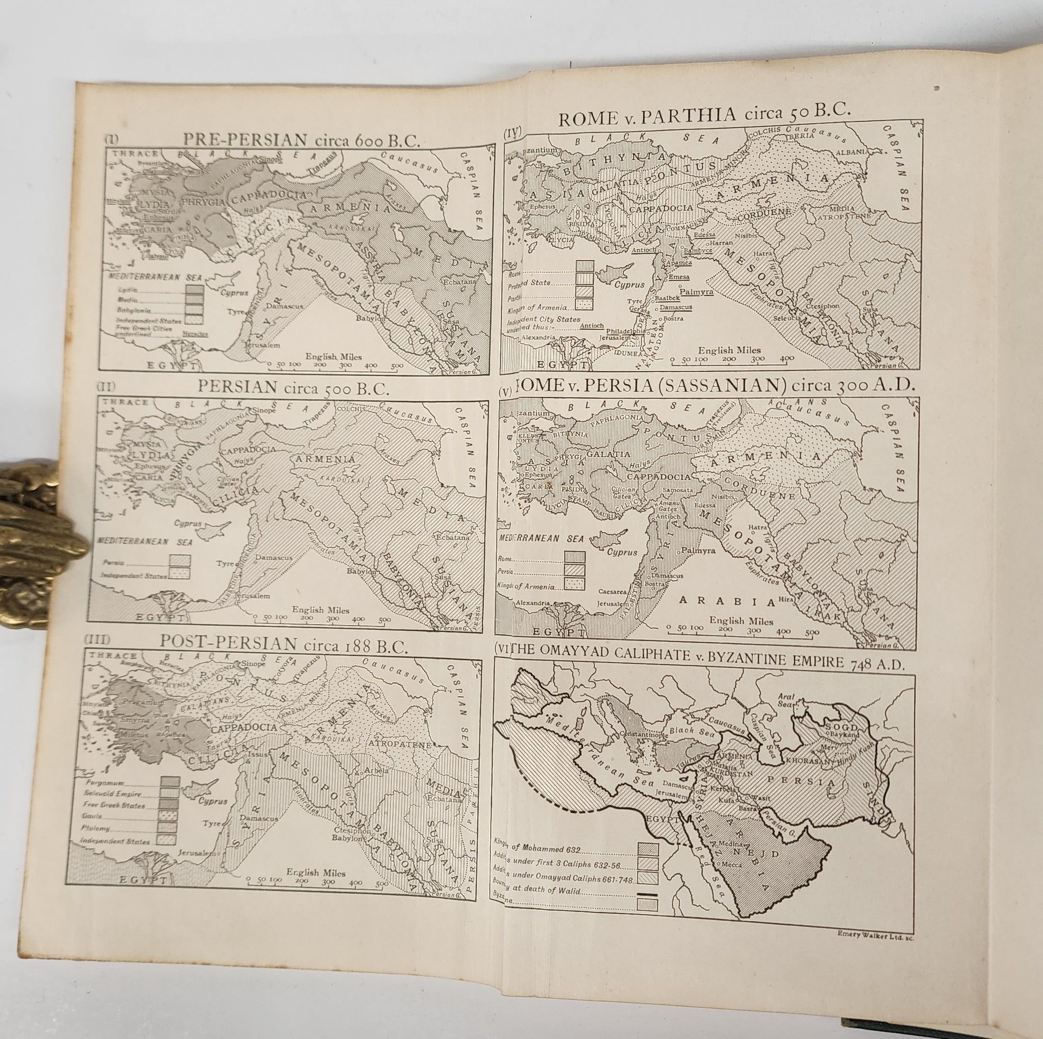 x, 638 p. 23 cm. Colour frontispiece, fold-out colour map. 3 folded maps in rear pocket. 23 other maps and plans, some in colour, some in partial colour, some b&w. 26 b&w plates. Green cloth with gold print. Corners bumped. Spine ends softened with tiny tears in spine tail. Some marks to cloth. Text block edges foxed, as is frontispiece and first pages. Ink inscription on front endpaper. Endpaper has chipped top corner. One plate jutting out has tape repaired edge. Rear pocket has opened edge. Occasional colour marks in margins.
