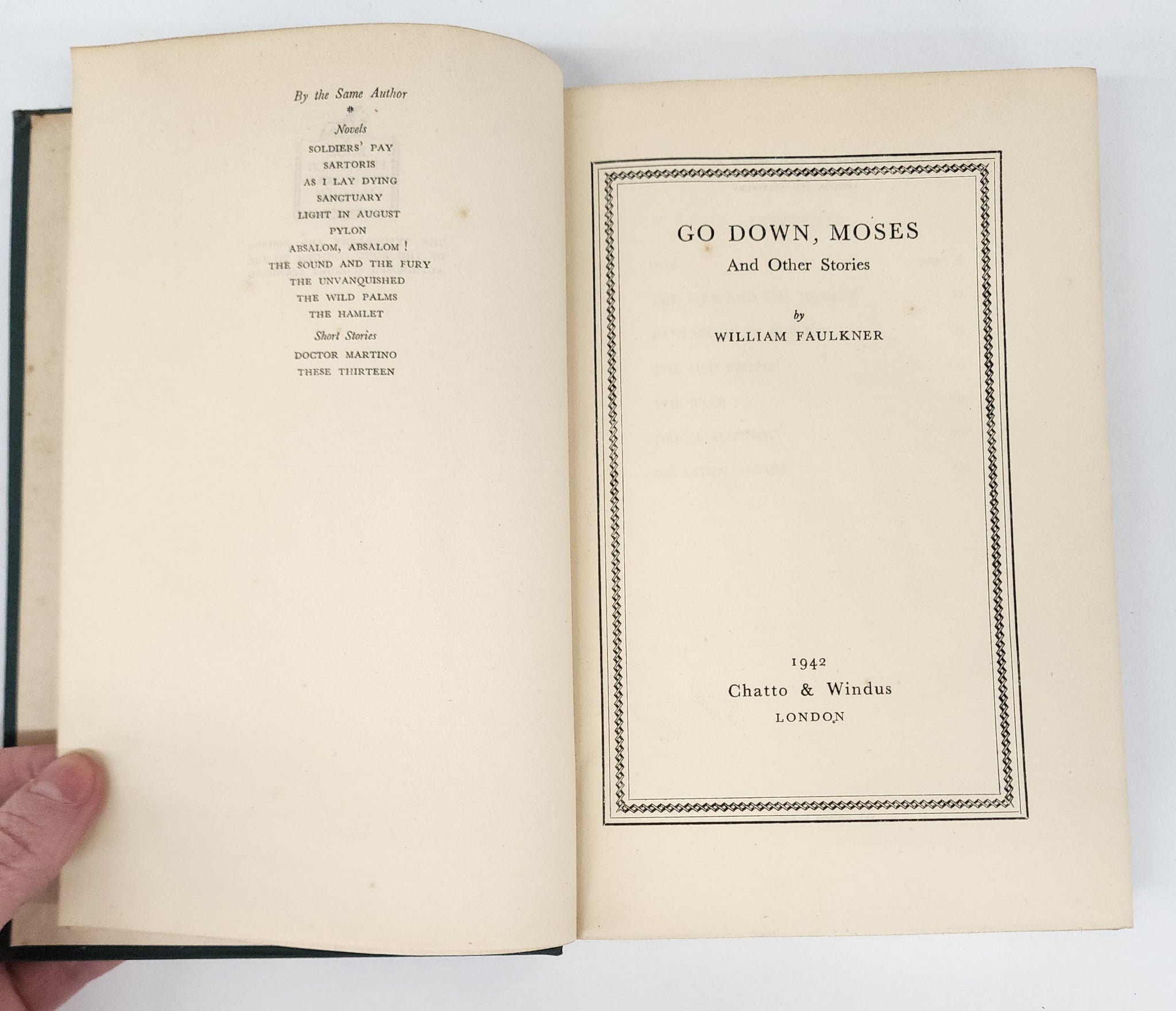 First UK edition of Faulkner's novel in seven interconnected parts. Though the subtitle states "And Other Stories" and much of the book's material had been previously published as individual short stories, Faulkner conceived of the book as a unified whole. Note that it has been printed according to "authorised war economy standard" imposed on publishers by wartime paper shortages.