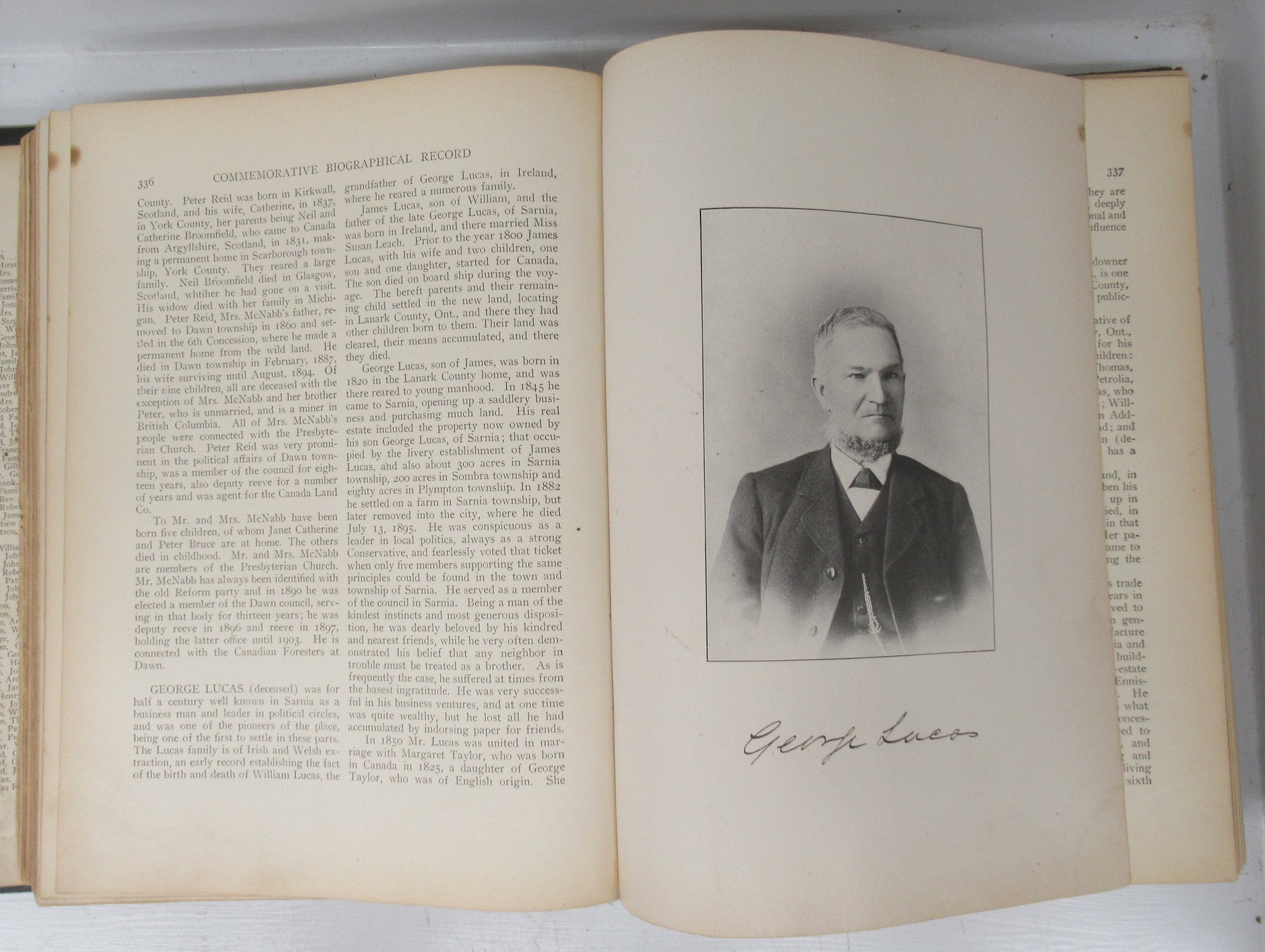 Details: viii, 840 p. 28 cm. B&w portrait plates. Full leather with blank impressing to boards, gold print on spine. All edges gilt. Patterned endpapers. Scuffs to edges. Cracking at pp. iv-v and p. v detached. First pages have chips and tears to edges. Rear endpaper also chipped and torn.