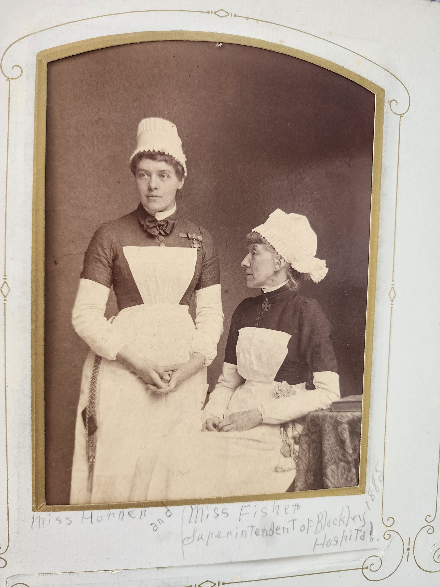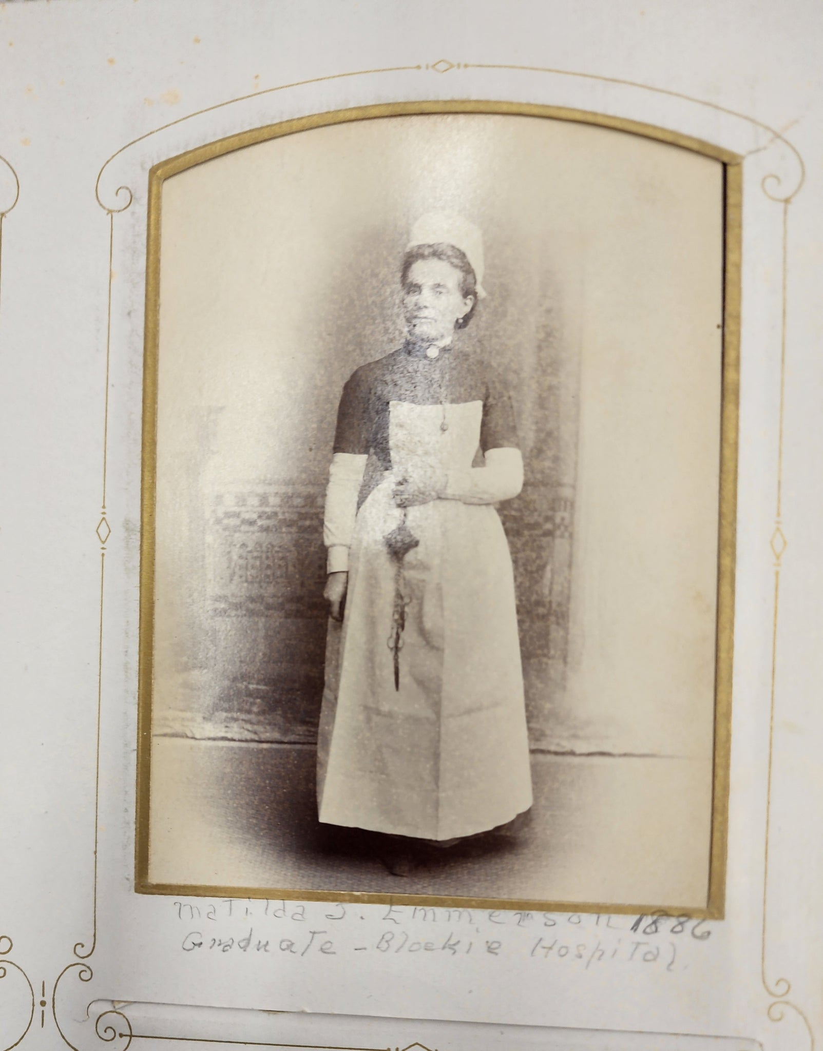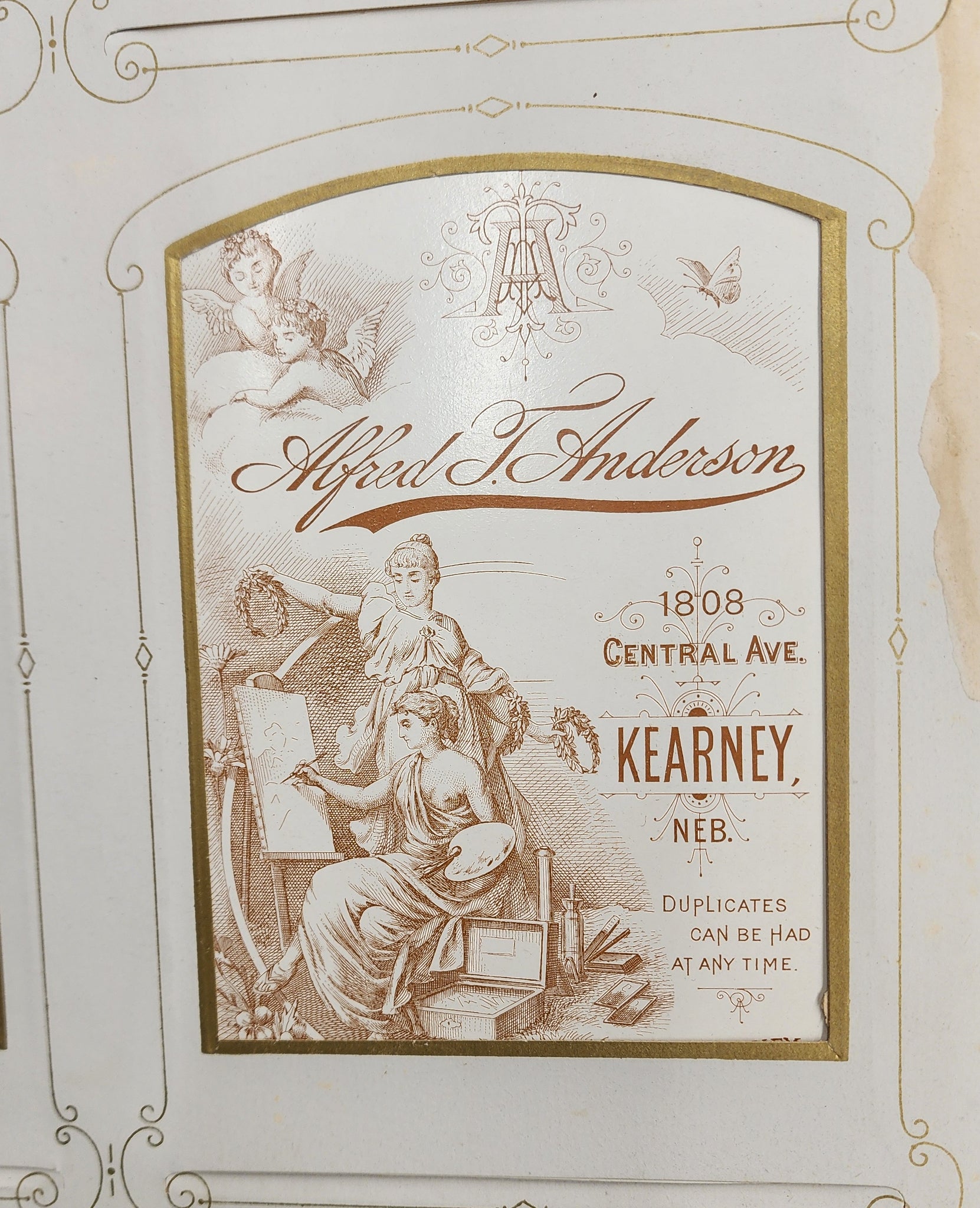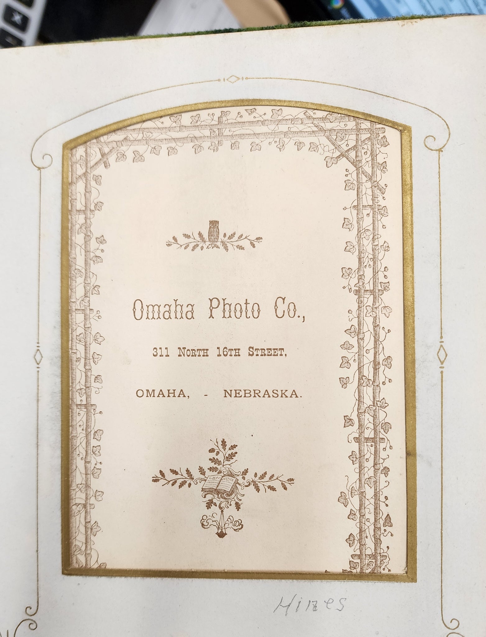 Some photographers include: Alfred T. Anderson (1865-1958) of Kearney, Nebraska; Riley & Sherraden of Council Bluffs, IA; Omaha Photo Co.; Carlson of Holdrege, Nebraska; W. Bool & Co. of The Vale Studio, King's Road, Chelsea; etc. Some of the portraits identified eg. Harvey C. Lewis and his spouse Lou Plumer, who married Feb. 14, 1894 in Council Bluffs, Iowa; Fred Emmerson, a Philadelphia carpenter; Elsie Dietrich of Webster, Nebraska; Matilda J. Emmerson, a graduate of Old Blockley nursing school in her nursing uniform; Miss Horner and Miss Fisher, the latter Superintendent of Blockley Hospital nursing school. "Old Blockley" aka Blockley Almshouse, later Philadelphia General Hospital, opened 1732-33 and was renamed Philadelphia General in 1919. Its nursing school opened 1885, the institution closed in 1977. Alice Fisher (1839-88) was a nursing pioneer at Philadelphia General, who introduced dramatic improvements in care standards and founded the nursing school. Another photo is of George Emmerson, editor of Jean Brenneman's "Skies Unclouded: The Montana Poems." Included is a copy of this 32 p. stapled booklet published by Galt House Publications, London, Ontario, ca. 1968. Emmerson taught at our very own University of Western Ontario. Poems are about childhood memories, family, changing seasons, etc. Booklet contains photos of Brenneman's log home, Montana landscape, and so on. Last photo in book is that of Duc Plumer's place, Dumbell Ranch, Brenneman's girlhood home in Hyannis, Nebraska.