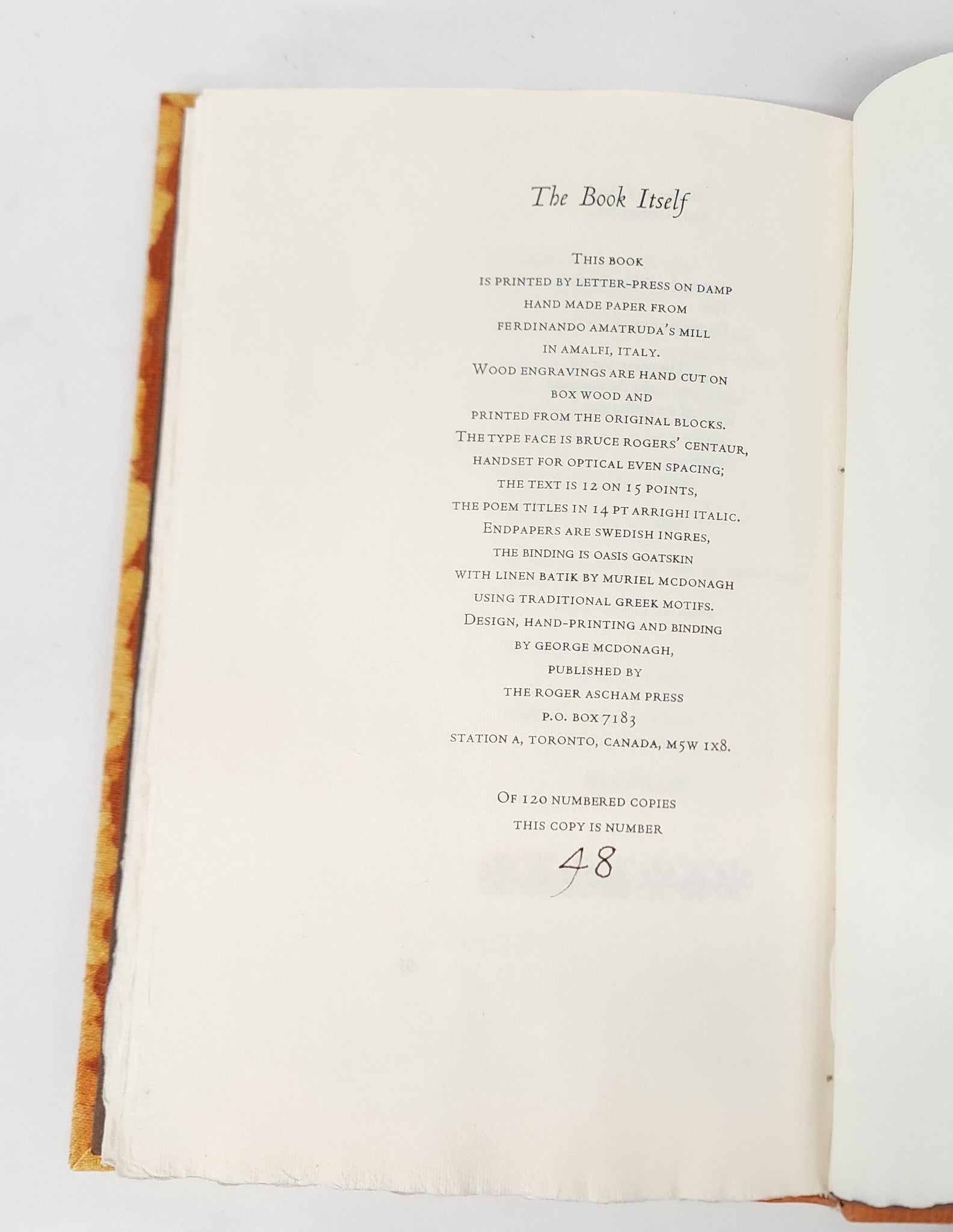 Edition: 120 numbered copies of which this is no. 48