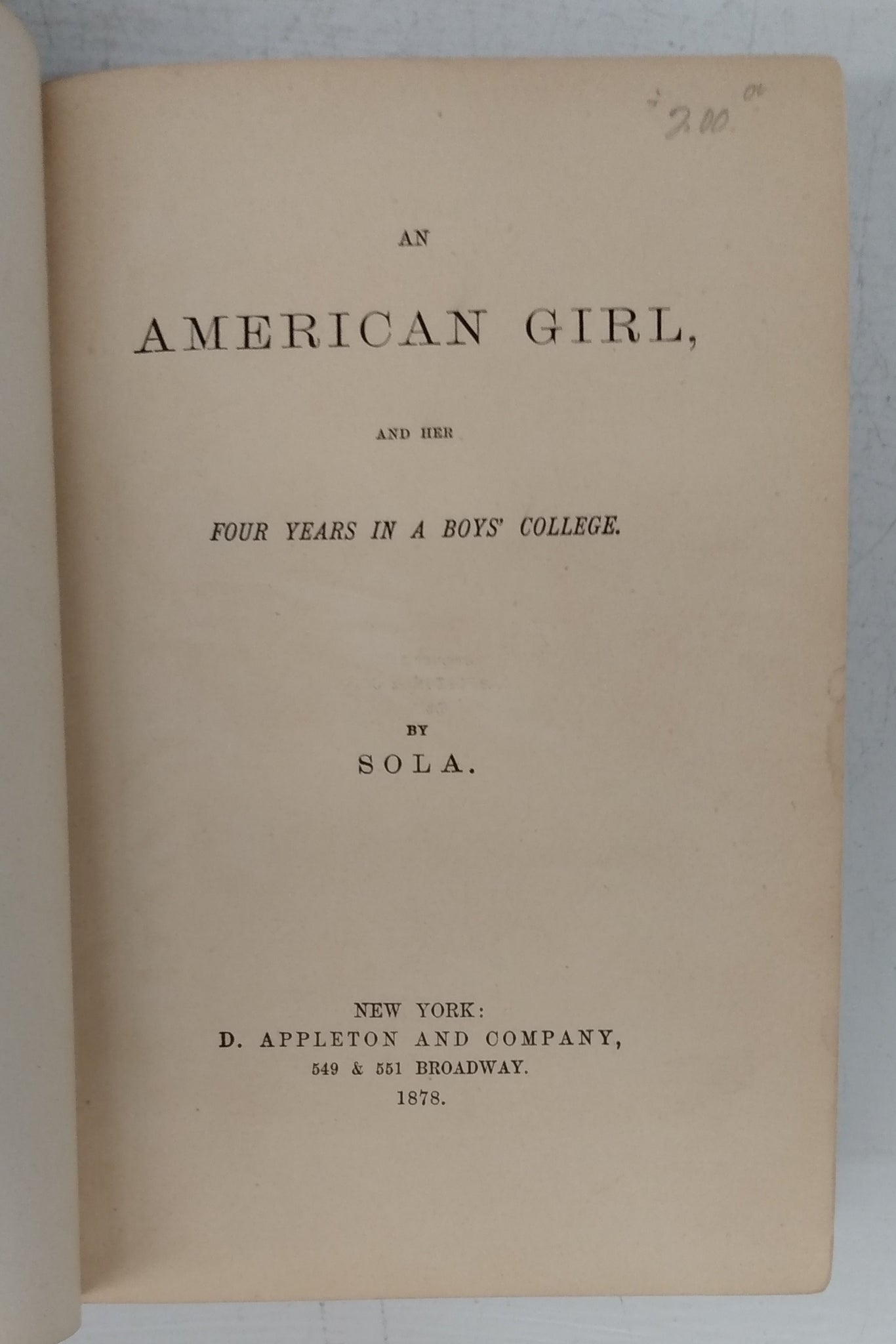A girl's adventures in a co-ed college as a member of the class of '70. The author touches a number of issues besides women's higher education, including marriage, faith vs. reason, corsets, a woman's hair length, etc.